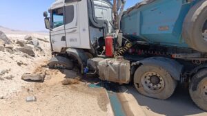 Según informaciones el vehículo menor, marca Great Wall, patentes BS.HY 89 se desplazaba de norte a sur, por su parte el camión de carga marca Scania, placas KK.WJ 15 lo hacía de sur a norte y por causas que serán investigadas ambos móviles colisionan frontalmente.