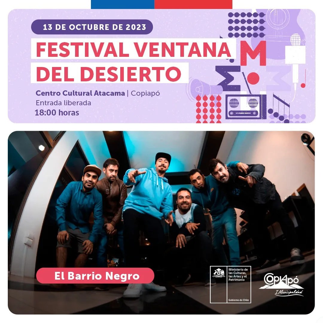 “Este viernes 10 de octubre desde las 18 horas les esperamos en el Centro Cultural Atacama en la tercera edición del festival Ventana del Desierto, certamen que reunirá a las 10 bandas y solistas regionales que clasificaron como los mejores del proceso formativo, y que competirán para representar a la región en el evento central conocido como Rockódromo, que es el festival público más grande del país y que se realiza todos los años en Valparaíso”, comentó Marcelo Muñoz Nautulpán, Seremi (s) de las Culturas, las Artes y el Patrimonio de Atacama.