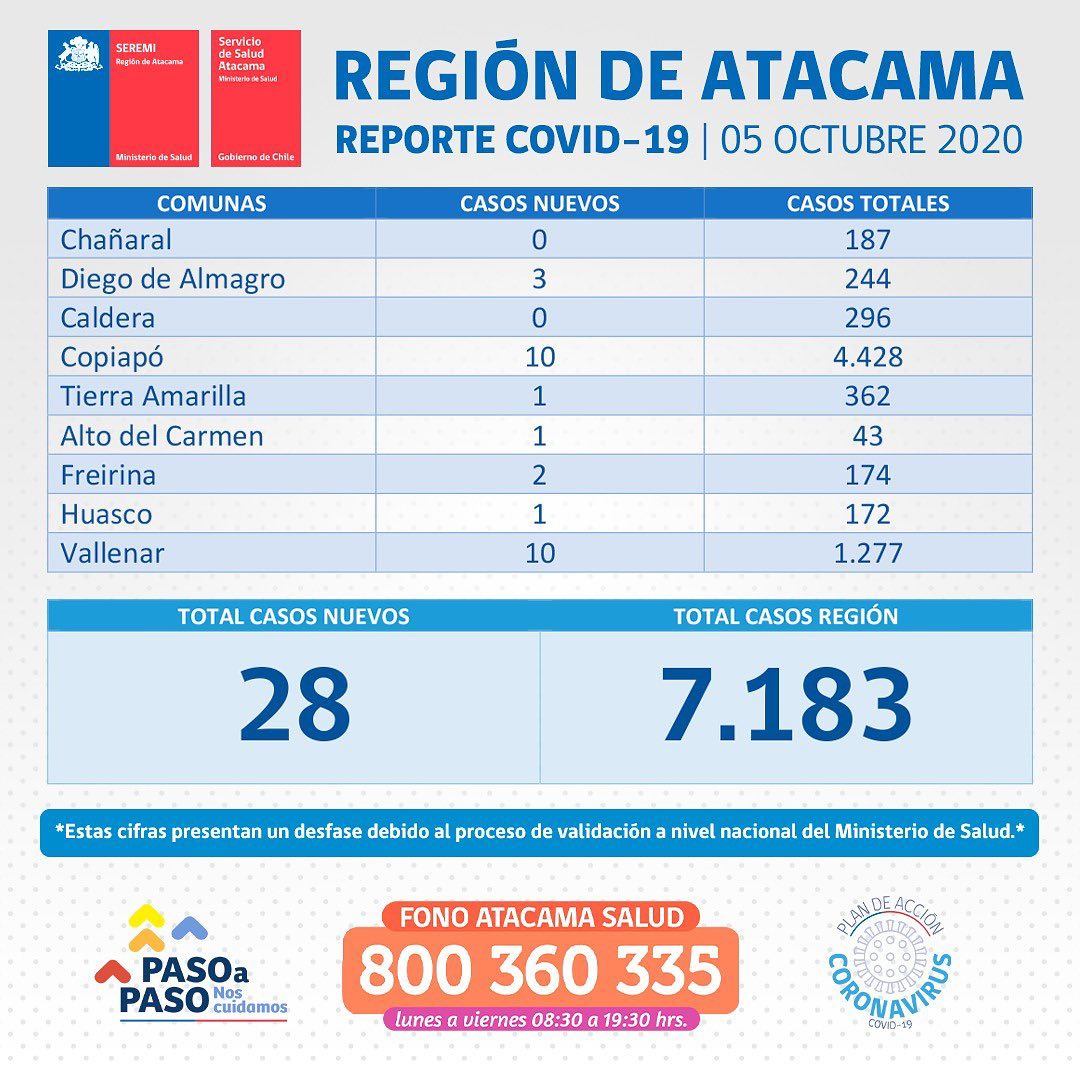 Con ello, Atacama suma a la fecha un total de 7.183 casos de Coronavirus.