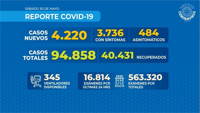En cuanto a los contagios, 3.736 fueron de forma sintomática y 484 asintomáticos, alcanzando los 94.858 de manera total desde el inicio de la pandemia.