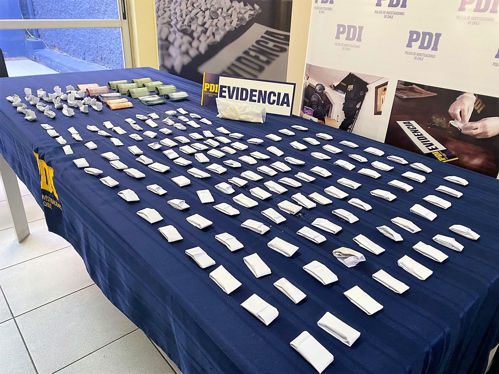 En el operativo, detectives lograron la incautación de cocaína base, cannabis y clorhidrato de cocaína, con un peso bruto de 392,66 gramos, equivalentes a 2.878 dosis de sustancias ilícitas. Además, se incautaron $1.552.000 pesos en dinero en efectivo, producto de la comercialización de la droga.