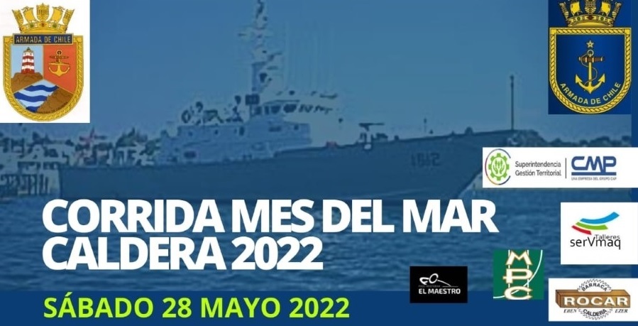 A contar de las 10.30 horas de hoy, se desarrollará la tradicional Corrida Mes de Mar en Caldera, evento organizado por la Gobernación Marítima y Capitanía de Puerto de Caldera en su afán de acercar e integrar a la Armada de Chile a la ciudadanía, conmemorar las Glorias Navales y celebrar el Mes del Mar.