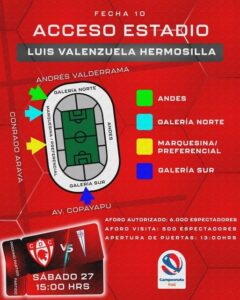 Para efectos de lo que será el partido, es que se ha determinado abrir las puertas del reducto de la Santa Elvira a las 13.00 horas, a fin de facilitar el acceso de los aficionados.