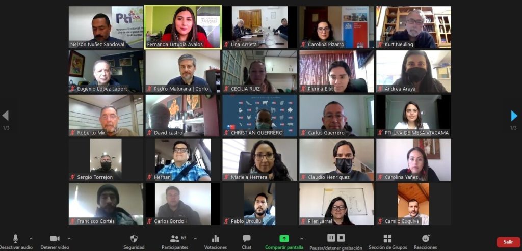 Esta instancia que, contó con más de 70 personas conectadas, forma parte de las acciones que está realizando el PTI de Uva de Mesa de Corfo, programa impulsado en alianza con APECO y APAC y ejecutado por Gedes. La jornada tuvo como objetivo entregar información a los productores y agricultores de uva de mesa sobre la situación fitosanitaria en la región de Atacama, junto con las normativas y desafíos para lograr la aprobación del protocolo del Systems Approach en el transcurso de este 2022.