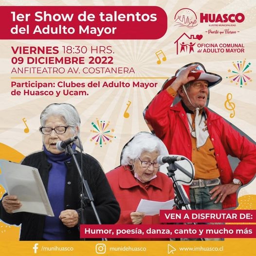 La Municipalidad de Huasco, invita a participar en lo que será el 1er Show de talentos del adulto mayor