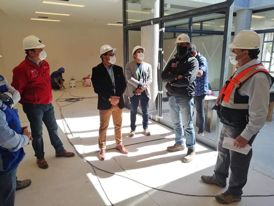 El alcalde Raúl Salas Aguilera, en compañía de los directores de la Secretaria de Planificación Comunal (Secplac) y Obras, respectivamente, además del Secretario Regional Ministerial (Seremi) de Obras Públicas, Alfredo Campbell, y el gobernador provincial, Ignacio Urcullú, visitaron los avances de las obras de la Biblioteca Pública y el edificio Consistorial.