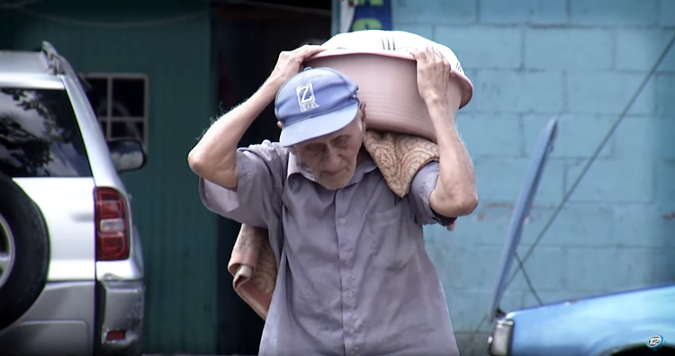 Anciano de 100 años debe seguir trabajando como cargador por falta de pensiones en El Salvador
