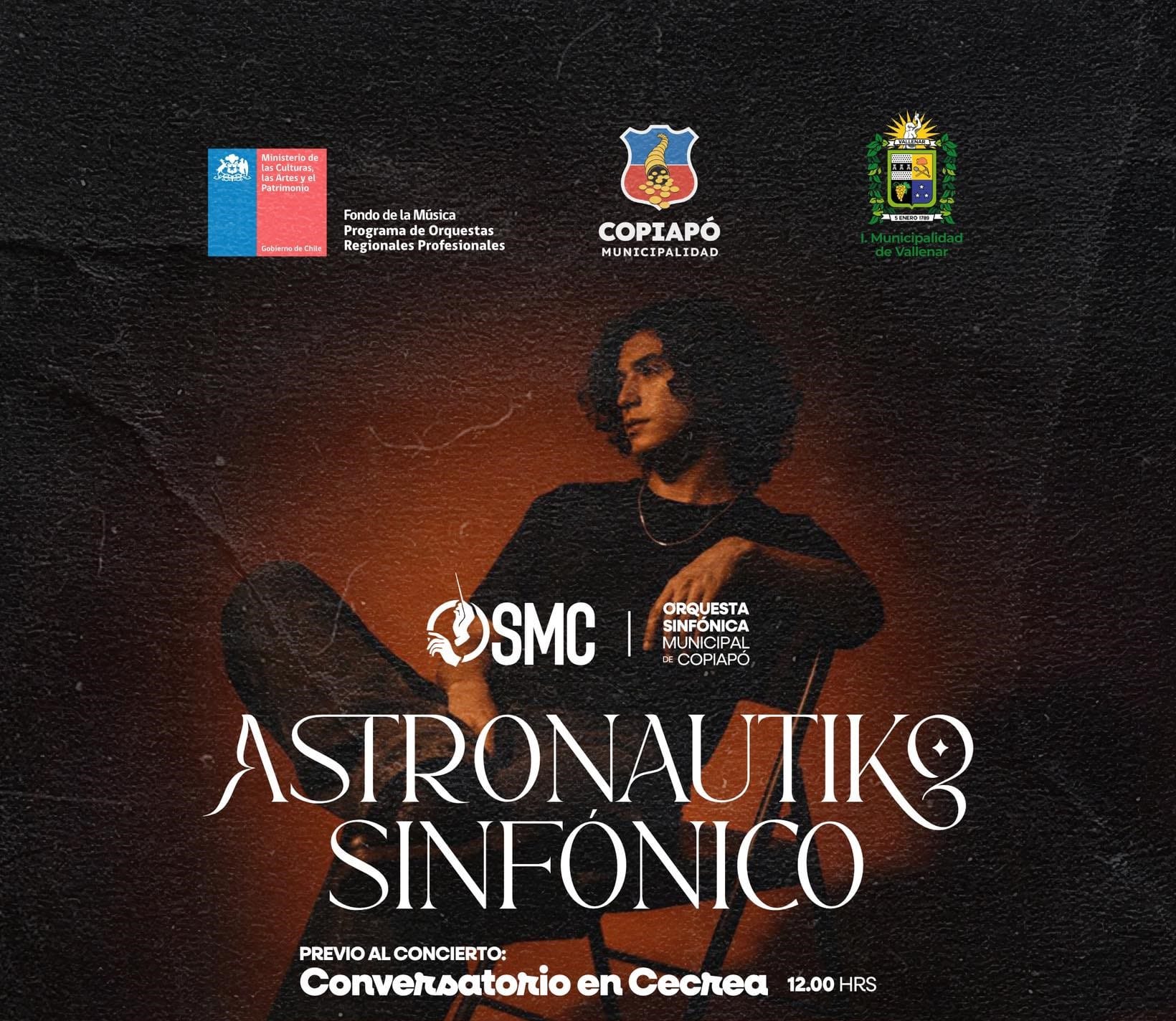 El municipio de Vallenar convoca a la comunidad a ser parte de un imperdible Concierto Sinfónico junto a Astronautiko, una propuesta artística que une la música urbana y la música docta, a cargo de la Orquesta Sinfónica Municipal de Copiapó, elenco profesional con más de 40 años de trayectoria, en una colaboración cultural entre ambas comunas.