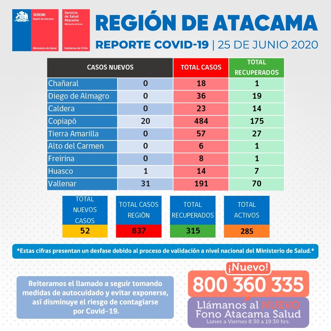 Atacama registra su mayor número de contagios en un día con 52 casos