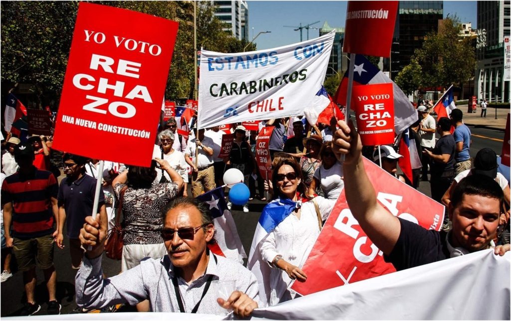 Por otro lado, se indicó que el sujeto estaba instalando parte del escenario en que se realizaría un acto final por la manifestación a favor de la opción «rechazo» en el marco del plebiscito de abril.