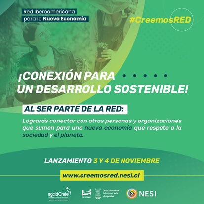 Organizaciones de la sociedad civil, pequeñas y medianas empresas, particulares y otras entidades lanzan la Red Iberoamericana para la Nueva Economía. Se trata de la primera plataforma de vinculación y cocreación destinada a consolidar una nueva economía en la región, para un futuro equilibrado entre las personas, la economía y el planeta. De esta forma, sus integrantes apuntan a un modelo económico con impacto positivo en las personas y el medioambiente. La red es una iniciativa de AGCID Chile, Agencia Chilena de Cooperación Internacional para el Desarrollo; CIESCOOP, Centro Internacional de Economía Social y Cooperativa de la Universidad de Santiago de Chile; el Foro NESI de Nueva Economía e Innovación Social; y CORFO, Corporación de Fomento de la Producción.