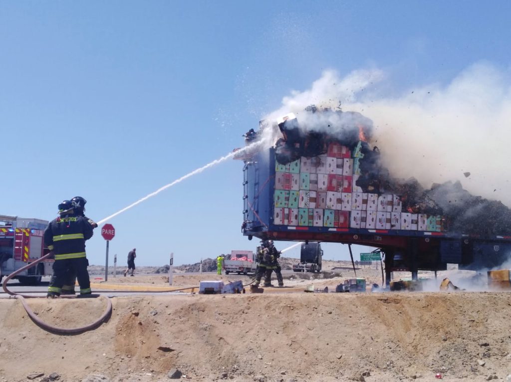 El vehículo, un Mercedes Benz placa KL.DS 95, era conducido por la carretera que une Caldera con Chañaral y al llegar al Kilómetro 893 el chofer se dio cuenta que la rampa y el contenido que tenía encima, comenzó a arder en llamas.