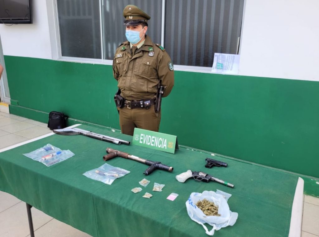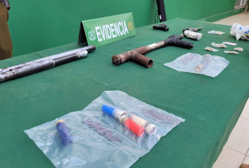 “Lo importante de este procedimiento es que se desbarata un domicilio cuyos ocupantes mantenían un alto poder de fuego y atemorizaban a los vecinos, pudiendo incautar dos armas de fabricación artesanal, un revolver adaptado para el disparo y una pistola a fogueo, junto a municiones”, dijo el mayor de Carabineros.
