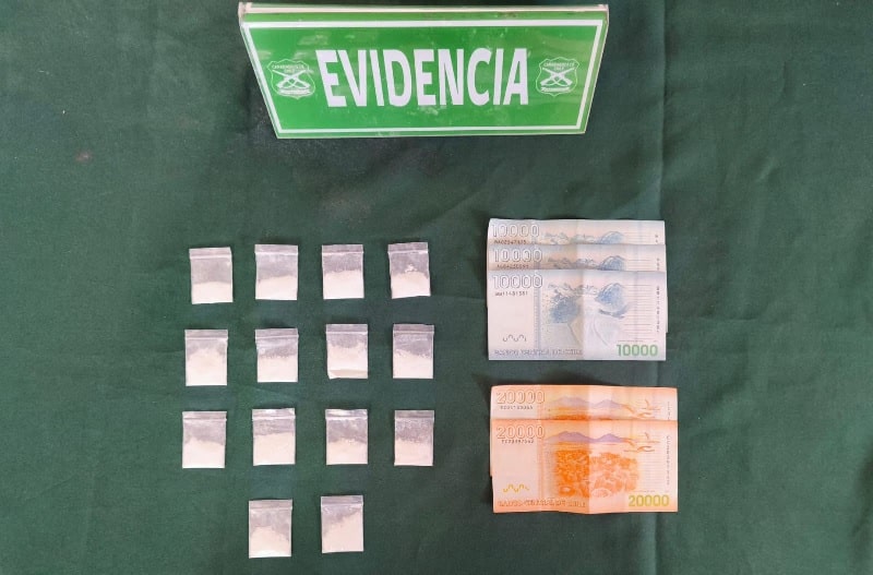 Este individuo fue aprehendido y trasladado a la 2ª Comisaría Copiapó, para ser puesto a disposición del Ministerio Público por el delito de microtráfico, junto con la incautación de las diversas dosis de clorhidrato de cocaína y el dinero en efectivo.