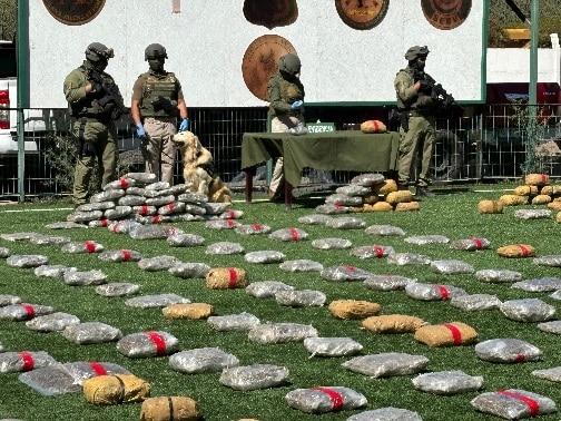 Durante el procedimiento se logró incautar un total de 492 kilos 947 gramos de marihuana y 1 kilo 33 gramos de ketamina, lo que equivale a 985 mil 894 dosis de marihuana y 1.033 dosis de ketamina, respectivamente.
