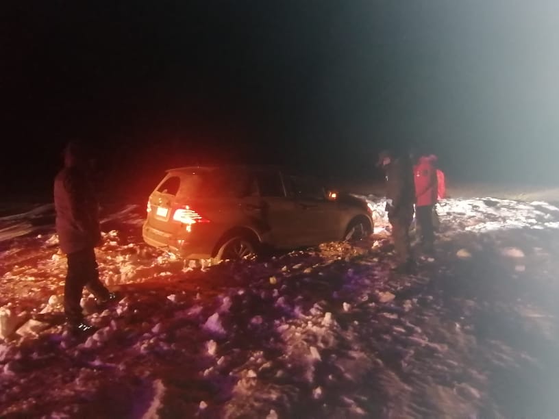En el kilómetro 165 de la Ruta CH31 fueron halladas tres personas (dos adultos y una menor de edad) que se encontraban atrapadas en la nieve al interior de un vehículo, en el sector cordillerano Maricunga.