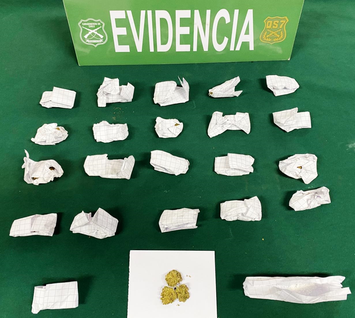 Producto de este allanamiento se logró sacar de circulación un total de 67 dosis de drogas, cuyo avalúo en el mercado ilegal alcanza a $ 330.000.