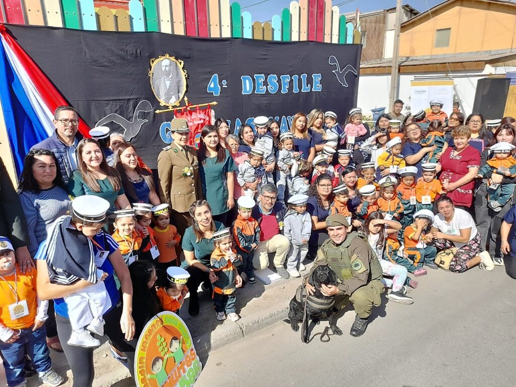 Carabineros y Gendarmería junto a párvulos de jardín Semillitas del Chañar del SLEP Atacama desfilaron para conmemorar el 21 de mayo