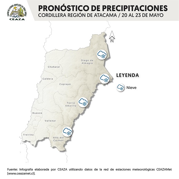 región de Atacama el nivel de la isoterma cero podría variar entre 3900 y 3300 m s.n.m. por