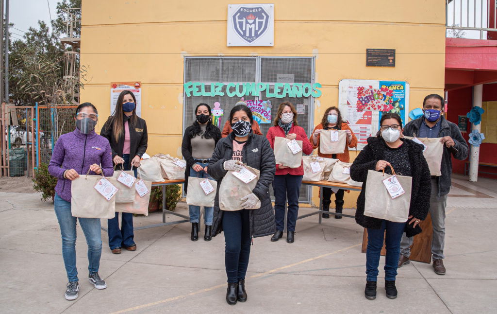 Una de las entregas destacadas de kits fue a apoderados/as de la Escuela Hernán Márquez Huerta, en el marco de la repartición que este establecimiento realizó de materiales y guías a sus apoderados, el que tuvo una característica especial ya que fue durante su semana de aniversario. Al respecto, Verónica Concha, directora de esta escuela ubicada en Paipote destacó que “muy agradecida de este regalito que nos hacen para apoderados y estudiantes de parte de Kinross y Apacheta”.