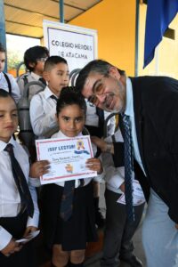 El acto fue encabezado por el rector del establecimiento, Lezme Contreras Avalos, junto a directivos y docentes, en que se reconoce el esfuerzo y logros de los alumnos de primeros y segundos básicos, que se iniciaron su escolaridad el año 2022, cuando el 100% del Colegio volvió a la normalidad.