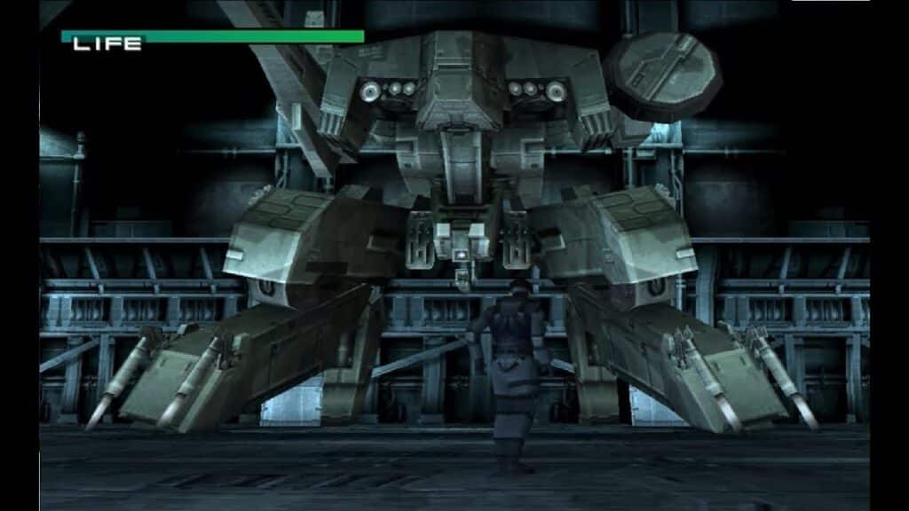 «a nuclear-equipped, walking death mobile!»- (Canal de Youtube XtraaJuice), la escena es de un remake del «Solid Original», «Twin Snakes», que solo salió para Gamecube, un momento legendario.