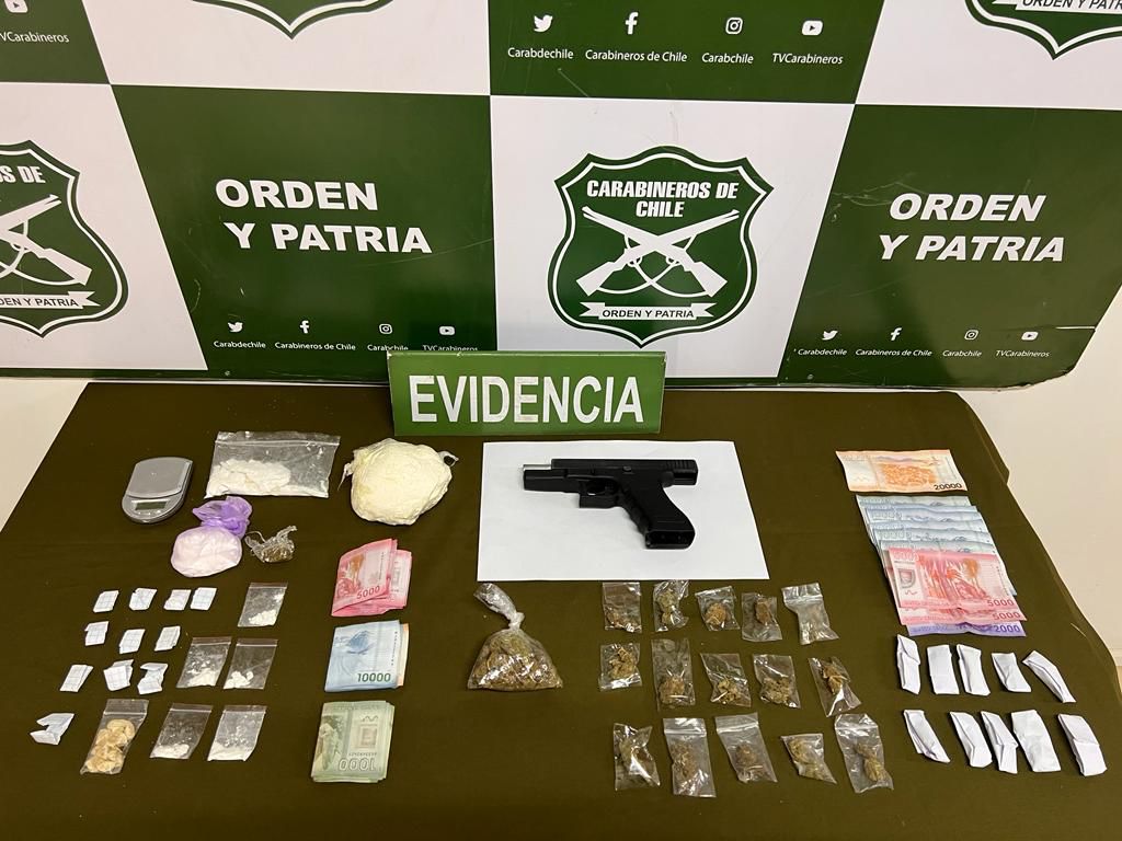 “Con dicha información, explicó el Jefe de la Sección OS7 Atacama, capitán Víctor Arellano, se desplegaron recursos logísticos y humanos, procediendo al allanamiento de cuatro departamentos, logrando además la detención de estas dos personas de nacionalidad venezolana, en estado irregular en nuestro país, como también la incautación de 477 gramos 900 miligramos de pasta base de cocaína, 79 gramos 300 miligramos de clorhidrato de cocaína y 50 gramos 300 miligramos de marihuana y $217.000 mil pesos en dinero en efectivo. En total se logró sacar de circulación mil 689 dosis de droga, con un avaluó de 9 millones de pesos”. También se incautó un armamento modificado y apto para el disparo.