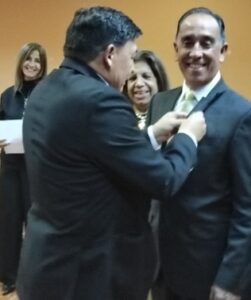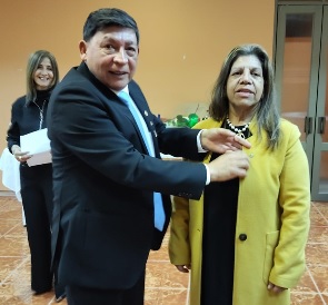 Acto seguido se procede a realizar el brindis de honor, a cargo del Socio Luis Alfaro Paredes, de antesala al juramento de dos nuevos socios que se integran al trabajo rotario y que corresponde a Germán Pinto Soto y María Luz Morales Salinas. Luego el Presidente saliente Juan Carlos Pereira entrega un informe de lo realizado durante el periodo 2024/2025. Como también se da a conocer el saludo enviado por el nuevo Gobernador del Distrito 4320, Wilson Villalobos Pérez a través de la asistente del mismo y socia Rosenda Martínez Cancino; llegando así al momento en que Presidente de Rotary Club Copiapó Oriente, le toma el juramento al nuevo Presidente del Rotary Club Satélite Bahía de Caldera, George Rohdis Bugueño, quién visiblemente emocionado expresó “recibo este nuevo desafío y lo asumo con mucho cariño y sé que con el apoyo de todos ustedes vamos a lograr los objetivos propuestos y cumpliendo también el lema para este año “Unidos para hacer el Bien”, como también lograr que nuestro Club se inserte aún más en la comunidad calderina y que nuestra membresía aumente”.