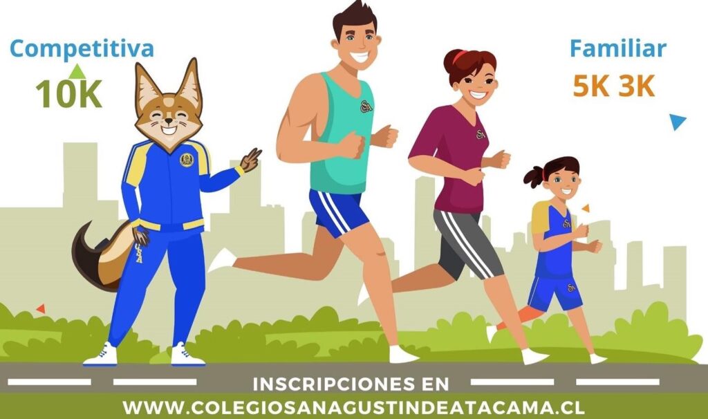 El Colegio San Agustín de Atacama, ha organizado la Corrida Familiar 2023 “Corramos en Familia” , para el día sábado 11 de noviembre desde las 09:00 horas, y que tendrá punto de partida y meta el edificio de Leonidas Pérez.