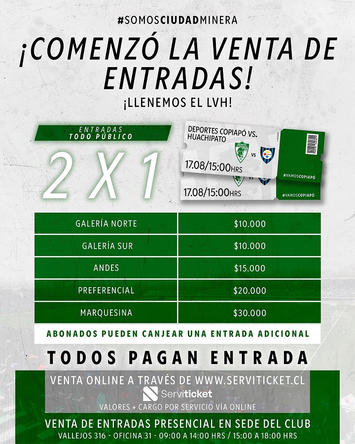 Se inició la venta de las entradas, para el partido que protagonizarán Deportes Copiapó y Huachipato, a jugarse a las 15.00 horas del sábado 17 de agosto.