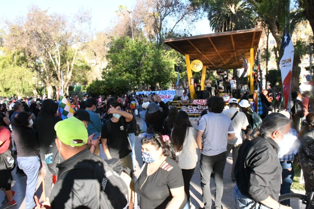 Pasadas las 18.00 horas, en la Plaza Prat se congregó alrededor de un centenar de personas, con el propósito de realizar un acto cultural, para luego hacer una marcha que en horas de anoche llegó a congregar cerca de mil 400 personas.