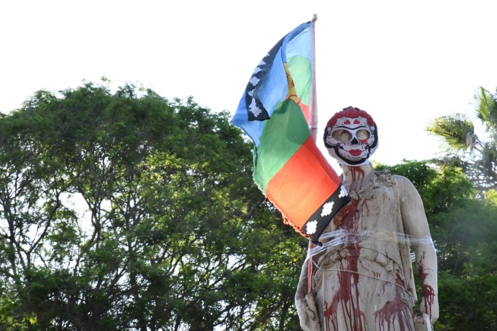 Comentario aparte merece señalar las condiciones en que quedó la estatua a la Minería, situada en el centro de la Plaza, la cual nuevamente fue atacada nuevamente.