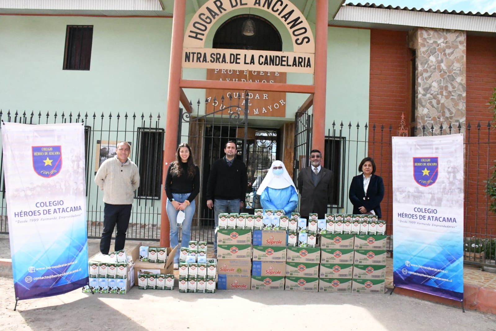 Una delegación del Colegio Héroes de Atacama se hizo presente en el Hogar de Ancianos Nuestra Señora de la Candelaria, con el propósito de hacer entrega del aporte reunido por dicha comunidad educativa por la campaña solidaria impulsada por Diario Chañarcillo.