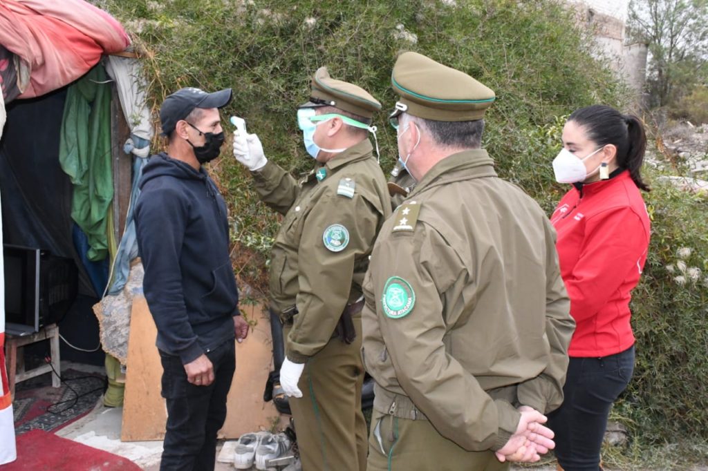 “Lo importante es que dentro de los roles que tiene Carabineros de Chile, como una obligación legal, es justamente dar cumplimiento a lo que es el rol de solidaridad social. En este punto damos inicio, tal como ha ocurrido ya hace semanas en otras partes del país, con la finalidad de acercarnos a estas personas que se encuentran en estas condiciones y entregarles un kit de alimentación, un kit de higiene y obviamente tomarles la temperatura y tener la posibilidad, de trasladarlos al Hospital, y si la persona en caso lo requiere, también trasladarla a los diversos albergues con que contamos aquí en la región”.