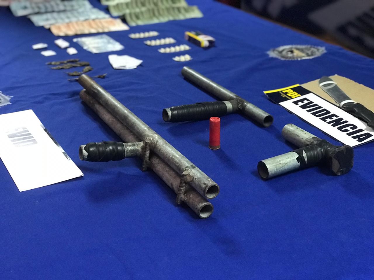En el procedimiento se logró la incautación de dos armas de fuego de fabricación artesanal, un cartucho sin percutir, 24,53 gramos de Cocaína Base, 8,08 gramos de cannabis sativa, 35 dosis de clonazepam y $137.000 pesos en dinero en efectivo de distinta denominación.