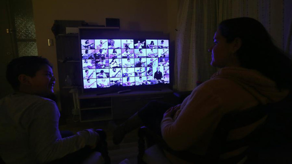 Pegados a las pantallas de los computadores, cientos de familias chilenas entonaron sus canciones y siguieron el evento «Mil Guitarras para Víctor Jara», que celebró este año su octava edición a través de Internet debido a las restricciones sanitarias por el coronavirus.