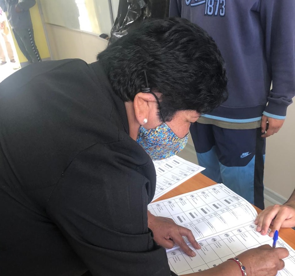 La Consejera Regional, y candidata, Patricia González Brizuela, emitió su voto en la Escuela Manuel Orella Echanez.