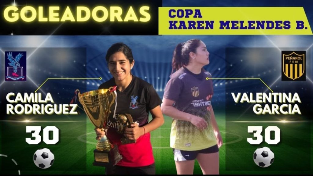 Camila Rodríguez, club Halcones Til Til: 30 goles. Valentina García, club Peñarol FEM: 30 goles.