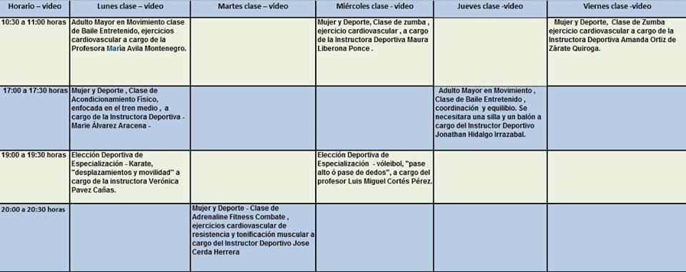 Entonces la programación de las clases para que te programes cada día es la siguiente.