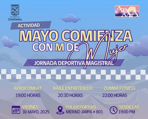 Luego, el sábado 31 de mayo quedan todas y todos invitados a la actividad denominada Corrida Chañaral Activo, siendo el punto de partida en el estacionamiento del estadio Luis Álamos Luque a contar de las 09:00 horas.