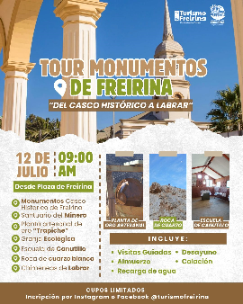 La Municipalidad de Freirina, a través de su oficina de Turismo, invita cordialmente a la comunidad a participar del Tour Monumentos de Freirina: “Del casco histórico a Labrar”.