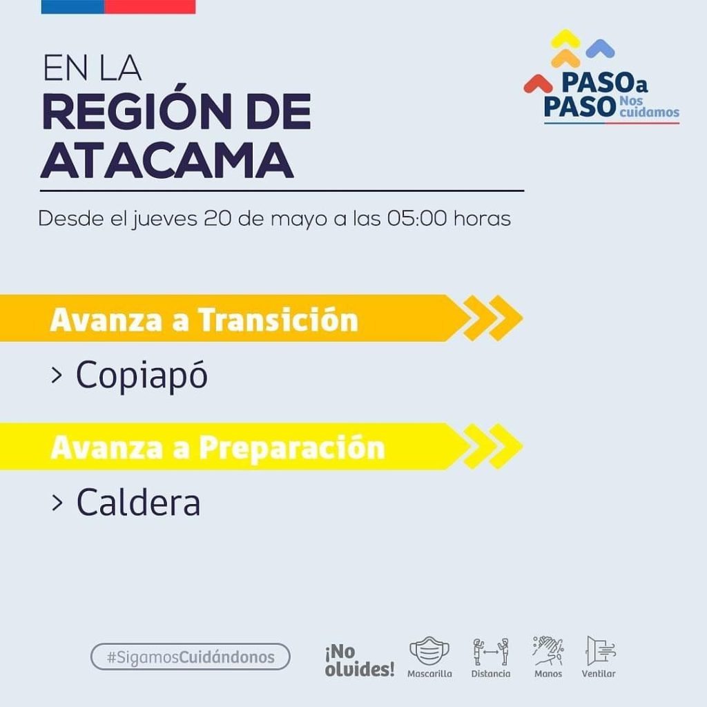 Las autoridades informaron este lunes, durante los anuncios de los cambios del Plan “Paso a Paso” dados a conocer en el reporte COVID-19, que en la región de Atacama, la comuna de Copiapó terminará su cuarentena y pasará a fase 2 de transición.