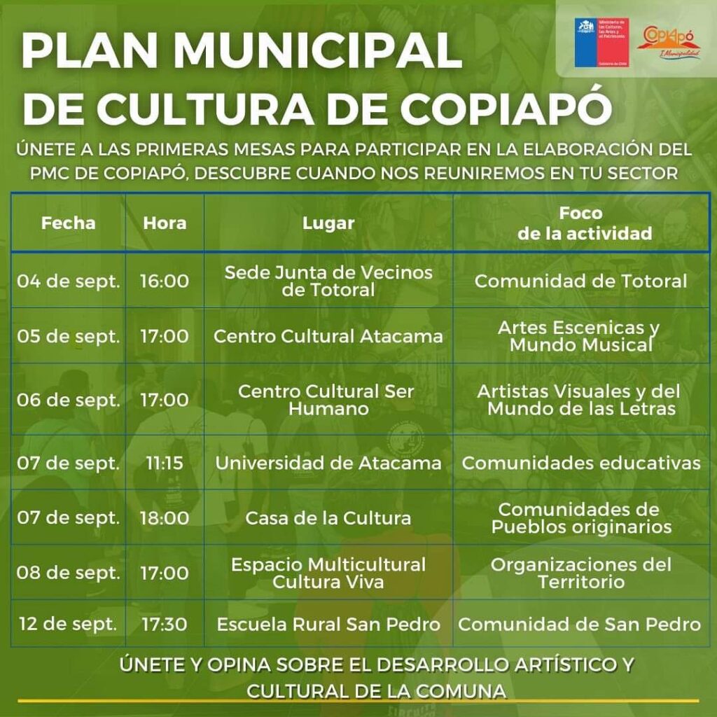 Copiapó: Se invita a la comunidad y organizaciones culturales a participar del Plan Municipal de Cultura