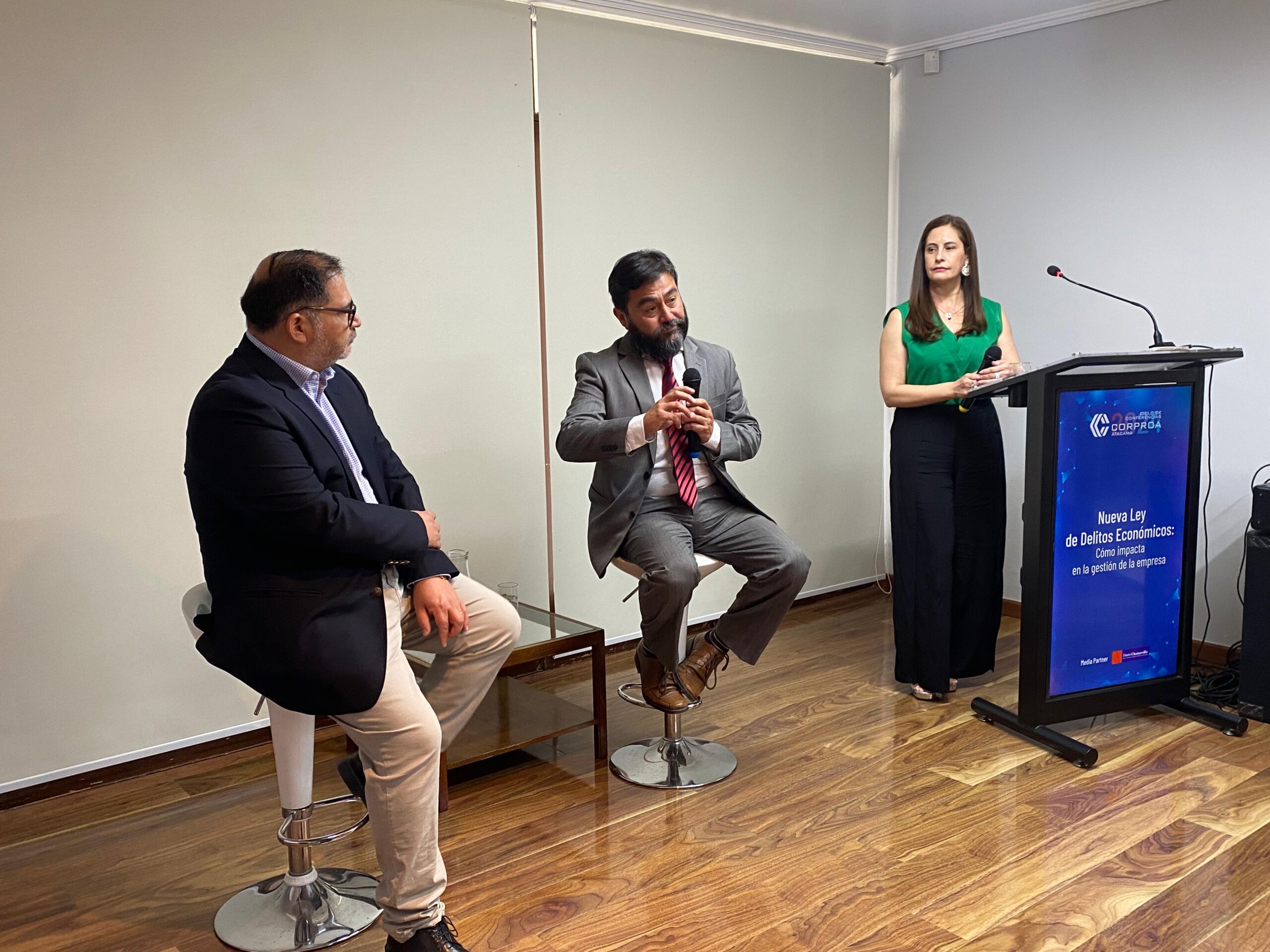 “El Departamento de Estudios de Corproa ha organizado esta charla con la finalidad de cumplir con uno de los objetivos principales de la Corporación, que es aportar con actividades que contribuyan a la gestión y desarrollo de sus socios. Quisimos compartir algunos aspectos esenciales de la ley 21.595 que trata sobre Delitos Económicos, Atentados contra el Medio Ambiente y Responsabilidad Penal de las Personas Jurídicas con la exposición de dos reconocidos abogados de Atacama”, comentó Juan José Ronsecco, presidente de Corproa.
