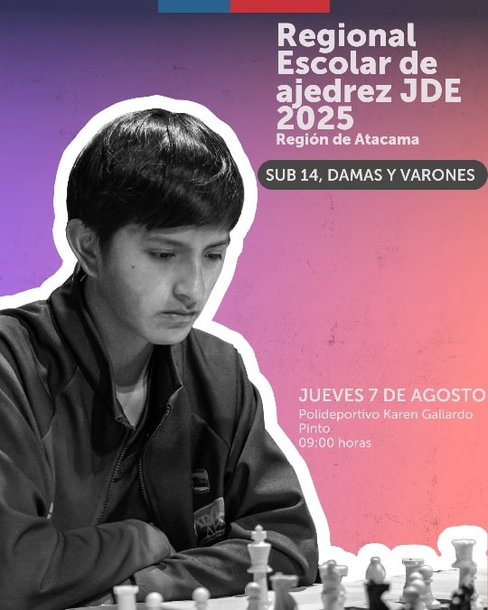 Este jueves a las 09.00 horas se desarrollará en el Polideportivo Karen Gallardo Pinto la Final Regional de la disciplina de ajedrez, damas y varones sub 14, de los Juegos Deportivos Escolares del Mindep-IND Atacama.
