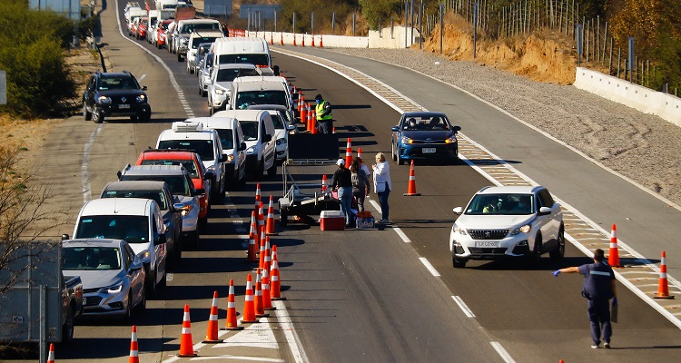 La medida que se ha implementado en los distintos fines de semana largos durante la pandemia y que culminará siempre el domingo a las 22:00 horas, busca impedir que personas de los grandes centros urbanos del país se desplacen a otros sectores con el riesgo de expandir contagios de coronavirus. (FKG)