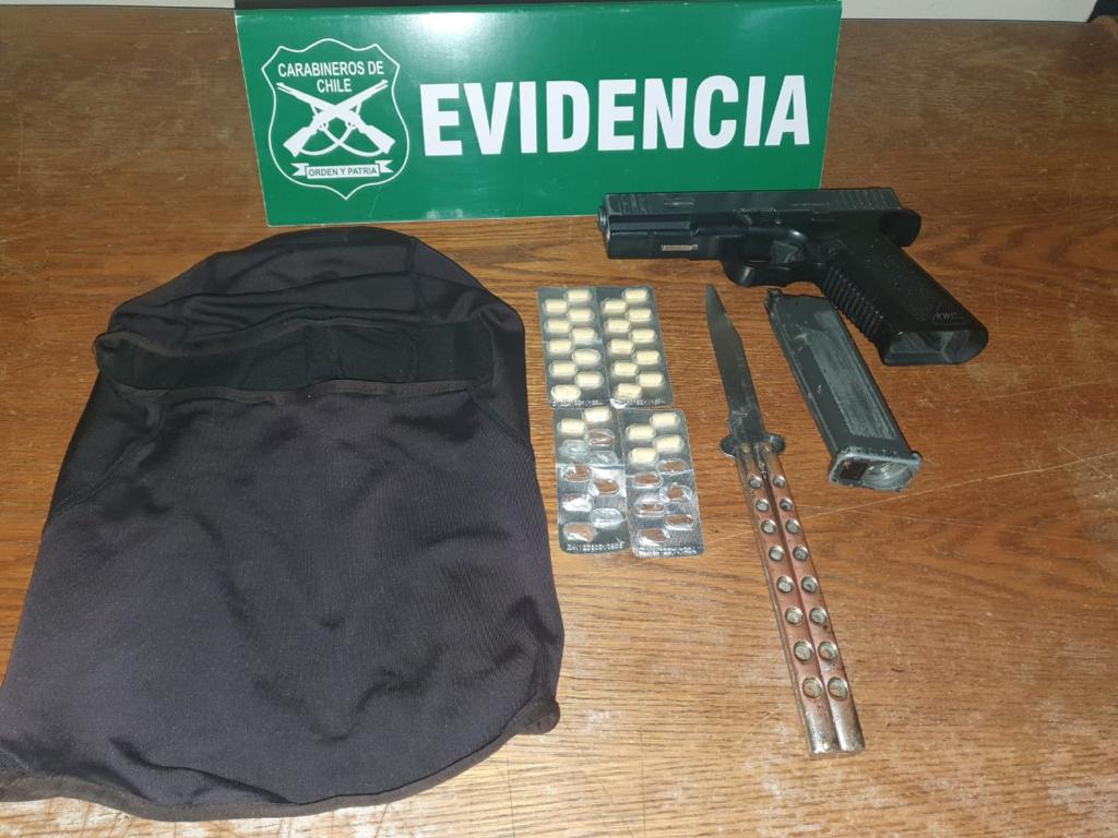 Un sujeto de 22 años de edad, fue detenido por funcionarios de Carabineros, tras una denuncia ciudadana que daba cuenta de su presencia en forma sospechosa y que manipulaba un arma en la vía pública.