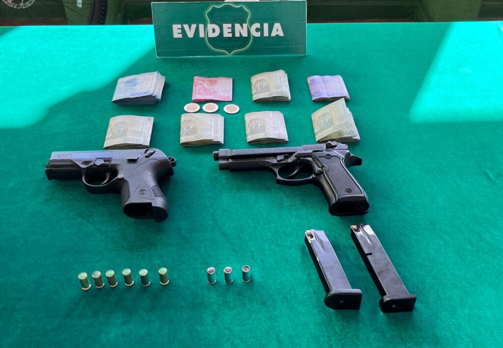 Debido a ello, el personal policial procedió a realizar un control de identidad investigativo bajando a los ocupantes que hacían caso omiso a las indicaciones. Asimismo, se realizó una revisión del vehículo y equipaje logrando encontrar dos armamentos adaptados para el que el proyectil salga desde el cañón con seis municiones a fogueo y seis municiones 9mm, las cuales estaban modificadas con su punta aplanada.