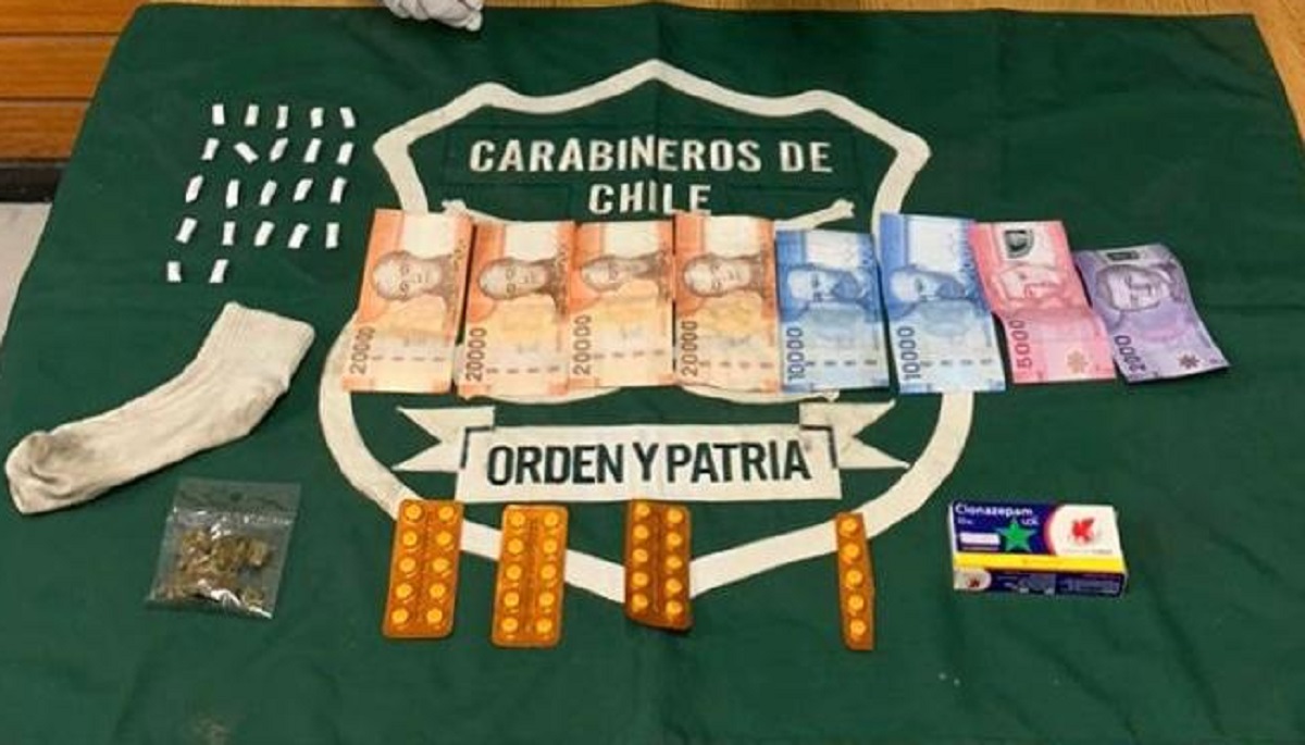 Esto obligó a los funcionarios a fiscalizar al conductor del auto, quien resultó ser un joven de 18 años con iniciales J.F.L.Z; éste -de forma voluntaria- reconoció el hecho y entregó al personal de Carabineros una bolsa con cannabis sativa y psicotrópicos, específicamente Clonacepan.