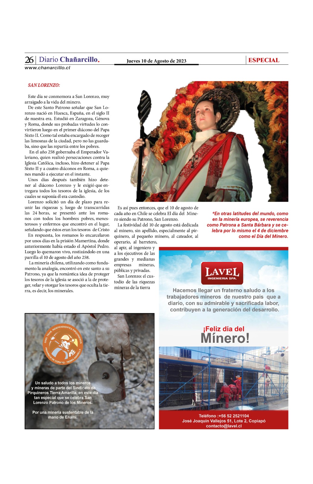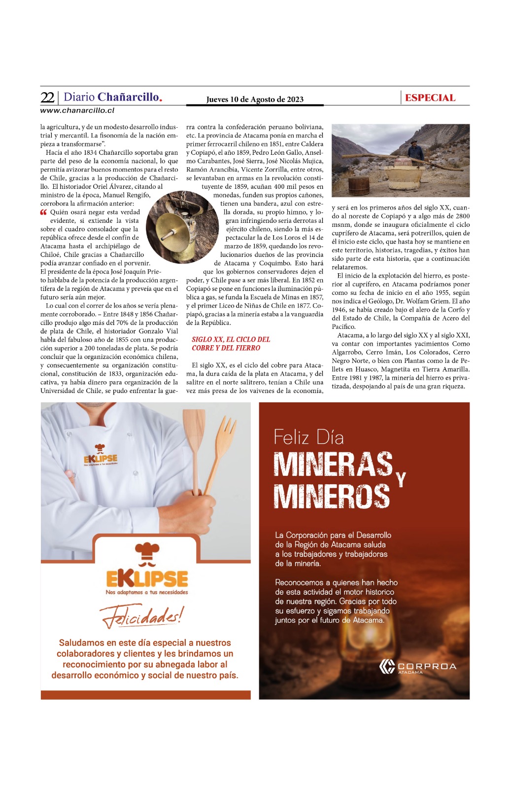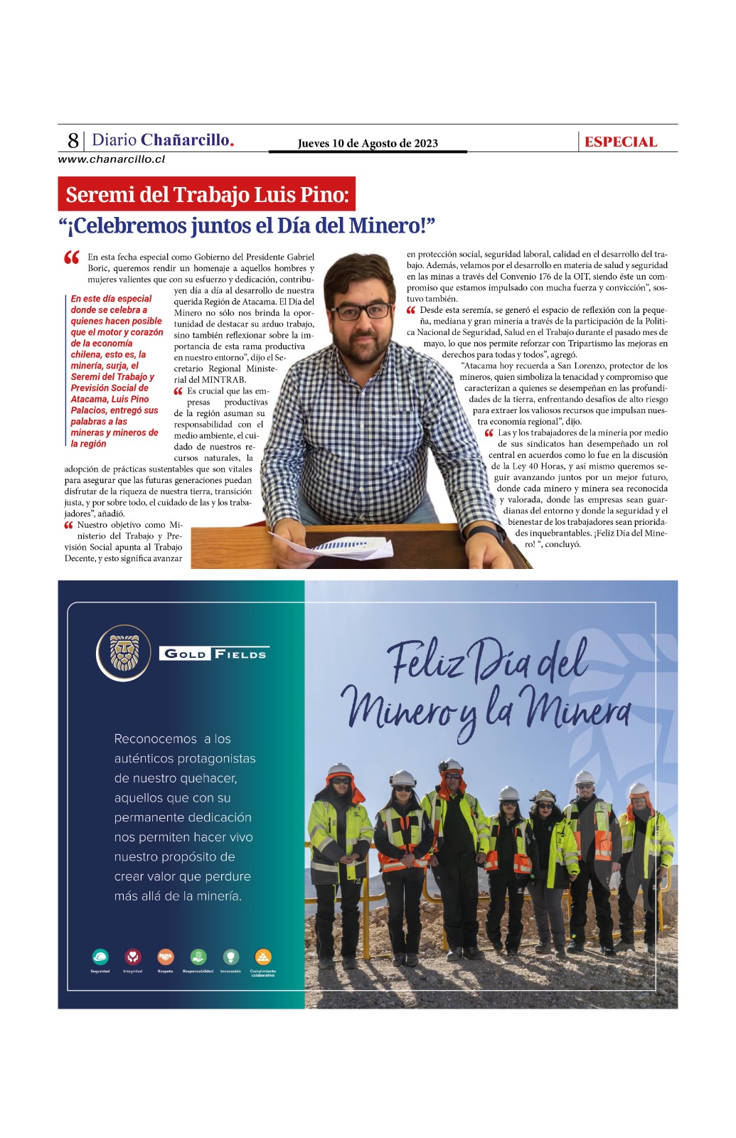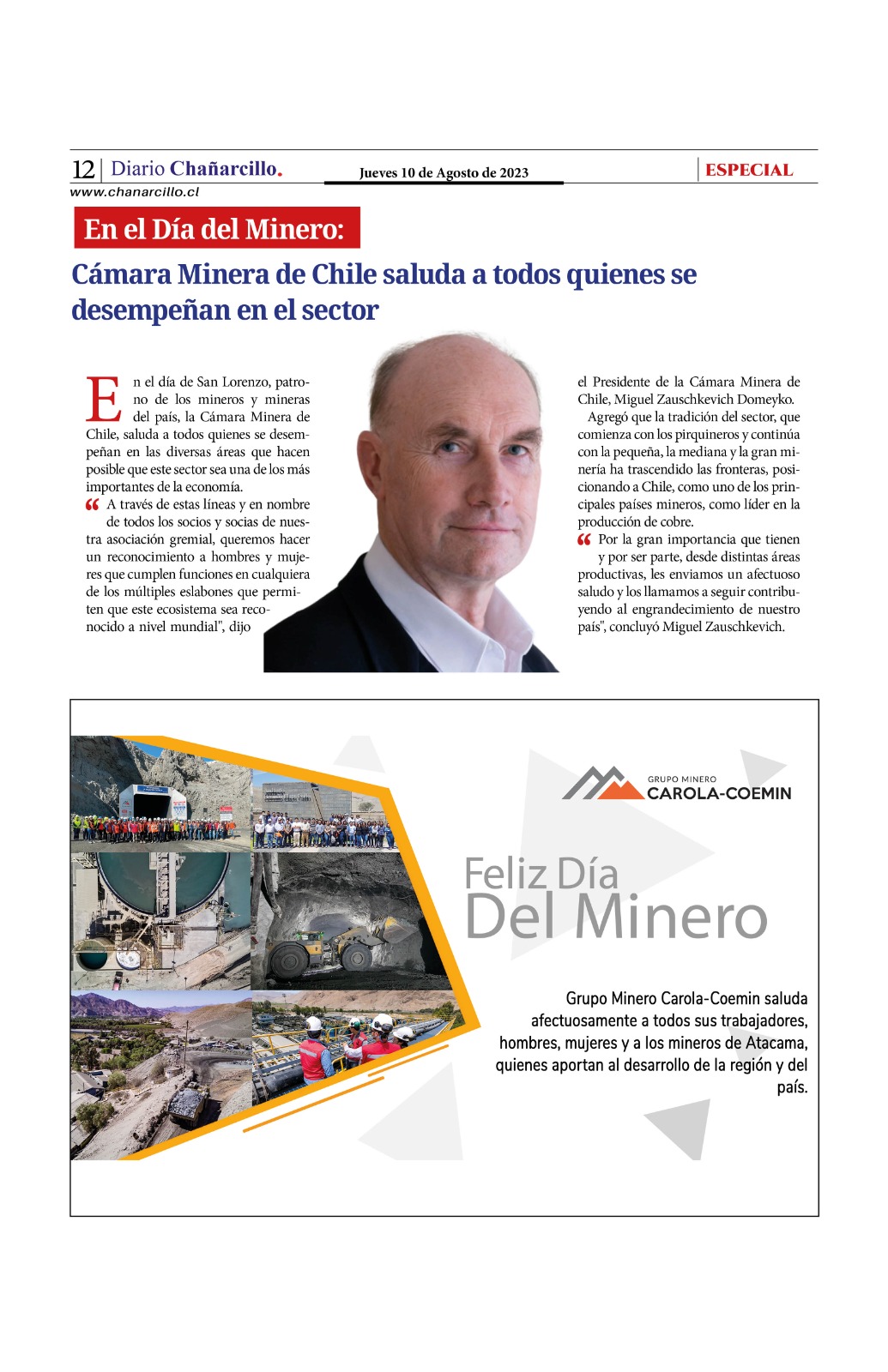 Diario Chañarcillo agradece fidelidad y confianza de sus clientes en publicación extraordinaria de Suplemento por Día del Minero